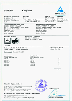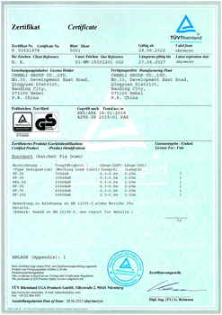 Prodotti principali: Imbracatura per cinghie, legatura a cricchetto, blocco a catena, paranco elettrico